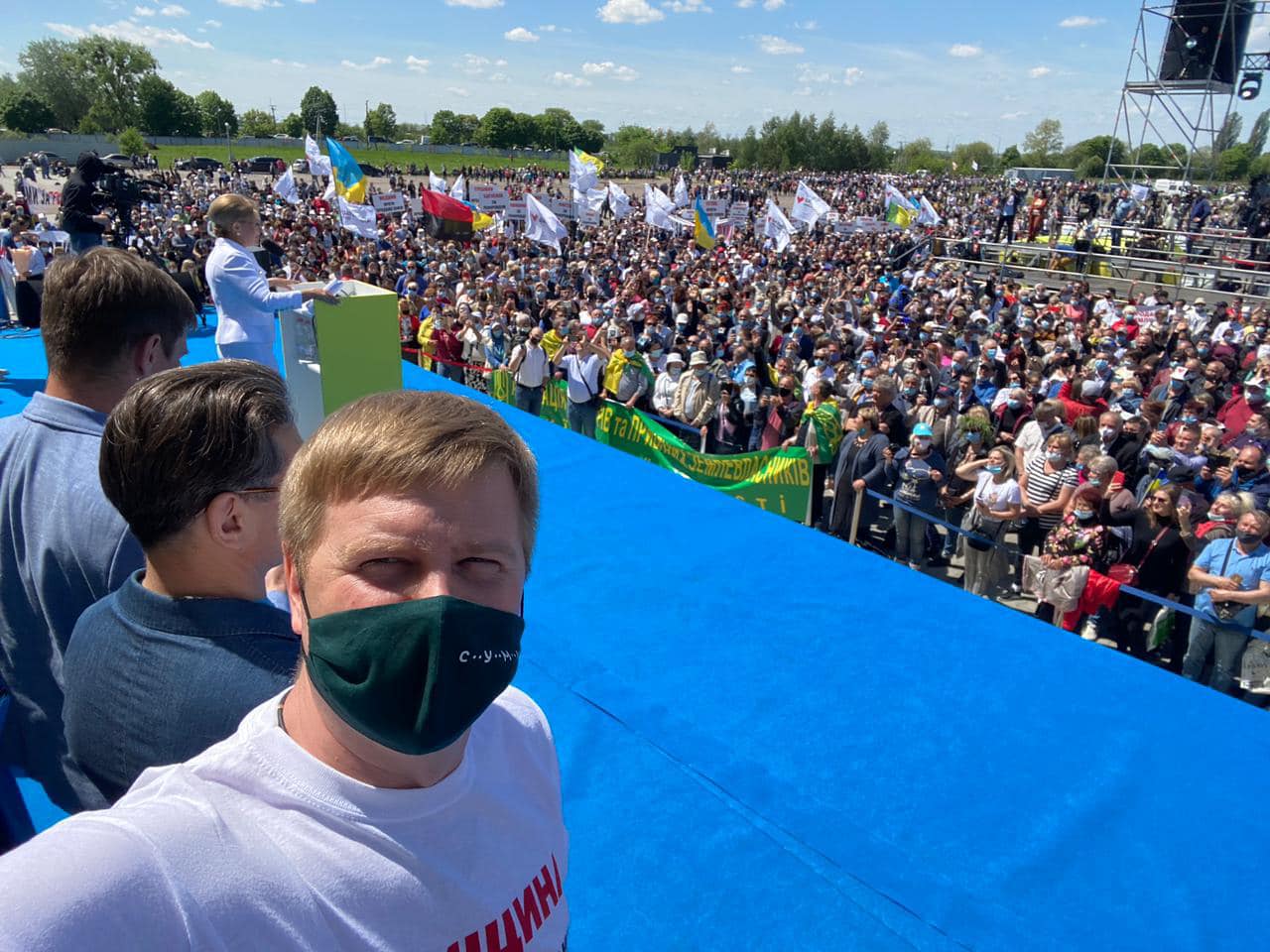 «Сьогодні тут зібралися ті люди, котрі розуміють, що продаючи за копійки землю іноземцям, ми продамо «душу нації» і суверенітет. Нас просто виселять, або зроблять кріпаками глобальні іноземні компанії.
