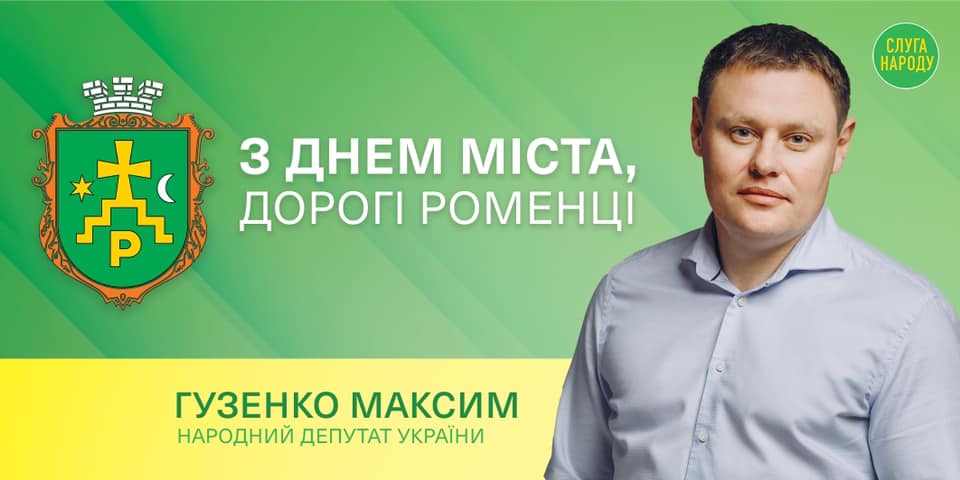 Народний депутат від Сумщини Максим Гузенко (партія «Слуга народу») у Фейсбуці привітав роменчан із Днем міста, який вони відзначають сьогодні, 16 вересня.