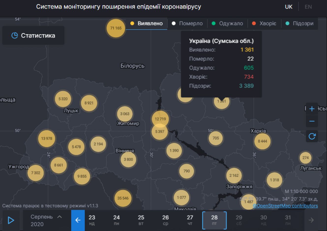 Станом на ранок 28 серпня в області виявили 1361 випадок коронавірусу (+59 за добу).