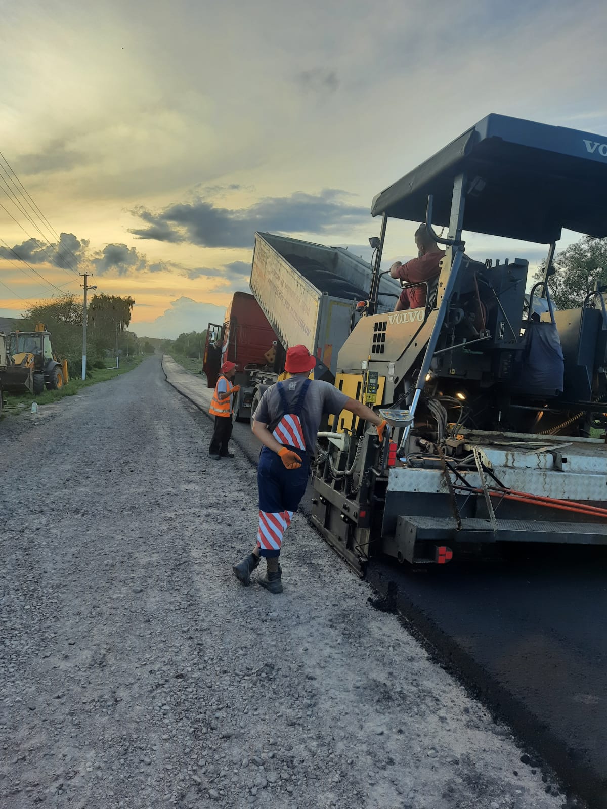 Наразі працівники “АМК РЕМ-БУД” займаються улаштуванням вирівнюючого та нижнього шарів покриття з крупнозернистої асфальтобетоної суміші (тип Б). Паралельно з цим здійснюють улаштуванням узбіч, знімають рослинний шар укосів насипу земляного полотна, який незабаром укріплять посівом трави.