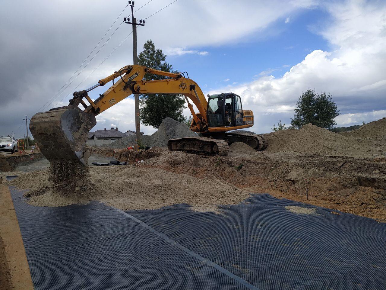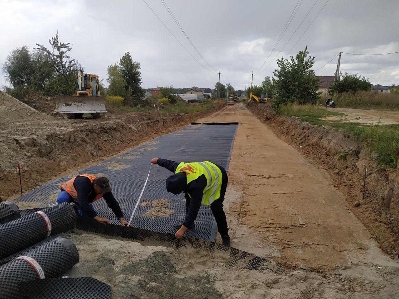 Так, наразі працівники “АМК “РЕМ-БУД” займаються влаштуванням корита і дорожнього одягу з піску та щебеневопіщаної суміші (С-5), укладкою шиповидної мембрани, бортового каменю, укаткою дна корита.