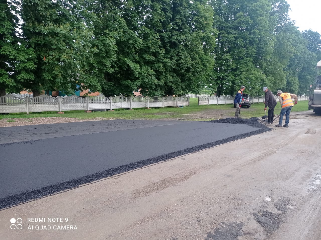 Після вкладання шару щебенево-піщаної суміші працівники «АМК РЕМ-БУД» провели вирівнювання профілю грейдером та вже перейшли до вкладання шару асфальтобетонної суміші товщиною 6 см. Після цього буде зроблено влаштування узбіччя.