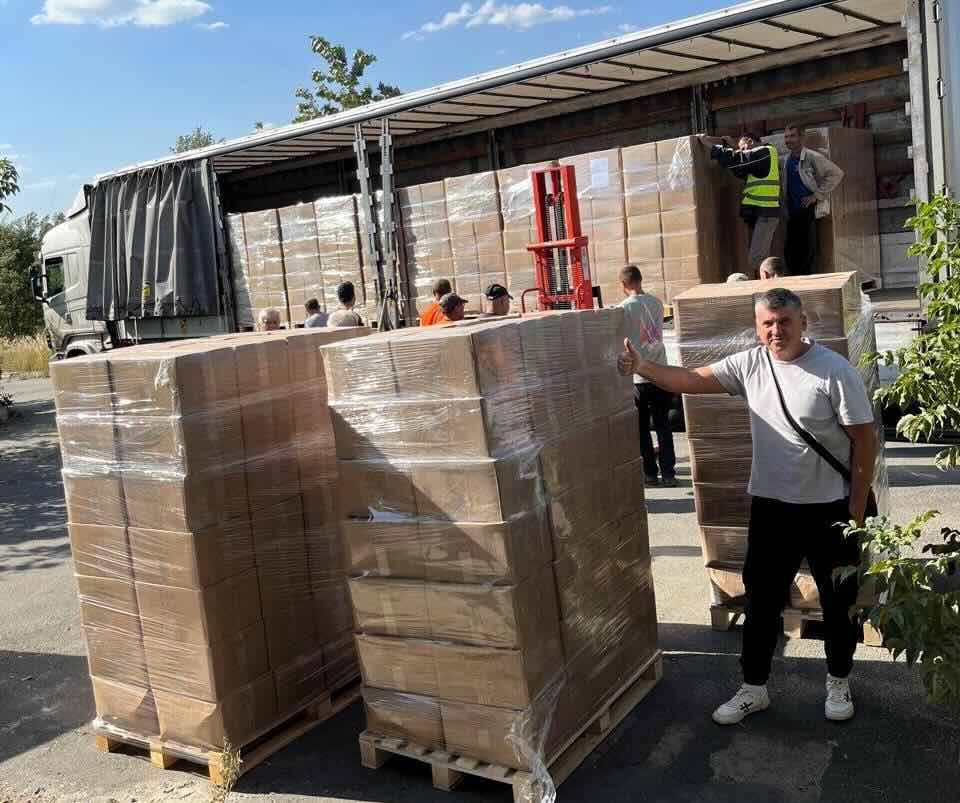 Завдяки спільній роботі громади Гессен (Німеччина), місцевих підприємців та небайдужих жителів, які зібрали кошти та придбали гуманітарний вантаж для України, Вікторії Радзієвської, керівника БО БФ “Дарничани” Григорія Маленка, депутатки Київради Зої Ярош, а також «Благодійного фонду Муссон» Анатолія Маковського у співпраці з “Благодійним фондом Олександра Ємця» під керівництвом Наталії Ємець, до Сум доставлено значний гуманітарний вантаж — 1680 продуктових наборів, кожен з яких важить близько 10 кілограмів.