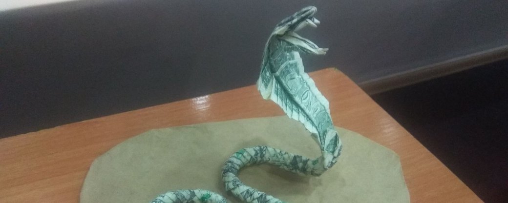 Однією з останніх фігурок створив кобру — із семи купюр номіналом в долар. «Вони всі цілі, після виставки розверну і буде 7 нових фігурок. Це робив півтори години», — запевняє Едуард.