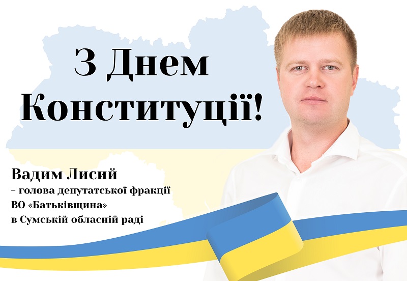 Лідер «Батьківщини» Сумщини Вадим Лисий вітає з Днем Конституції України!