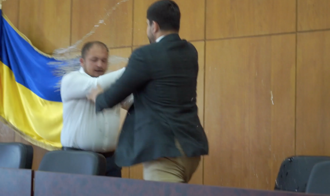 У результаті невеликої бійки, втім, більше “постраждав” сам ініціатор: велика частина води вилилася на білу сорочку мера.