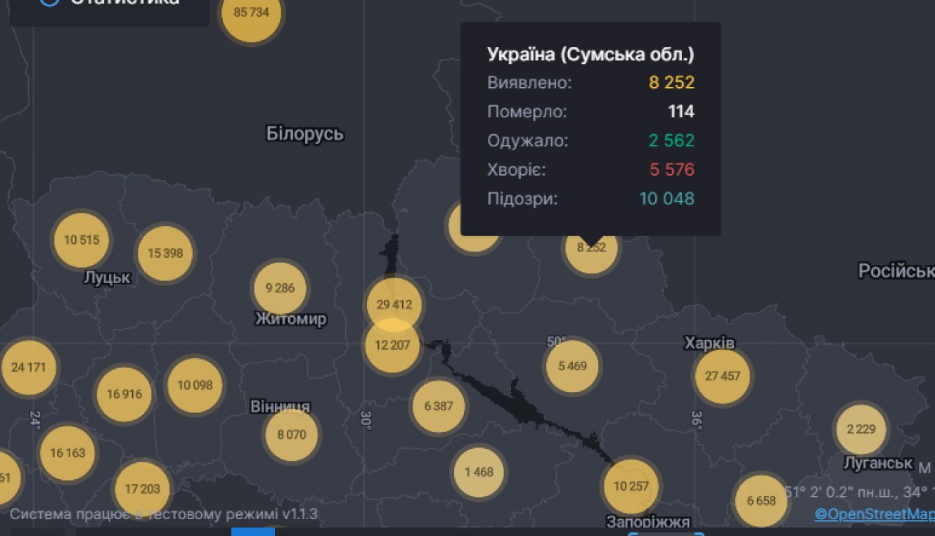 Станом на ранок 16 жовтня в області виявлено 8252 випадки COVID-19 (+269 за добу).