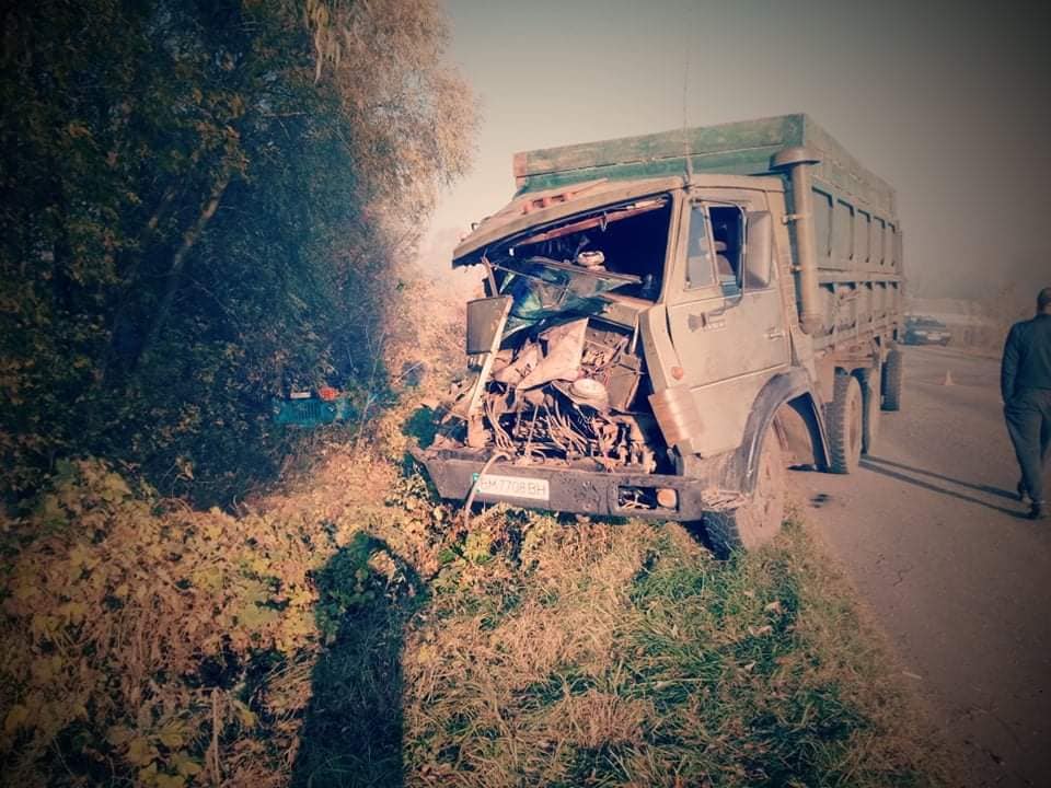 Неподалік від села Зінове Путивльського району на трасі сталася дорожньо-транспортна пригода за участі КамАЗу і ЗІЛу.