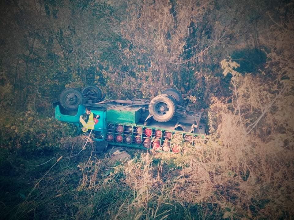 У результаті аварії перекинулася вантажівка, що перевозила газові балони, постраждали легковик і ще одна вантажівка. На щастя, балони лишилися неушкодженими, їх наразі намагаються дістати й вивезти. Людських жертв немає, передає sts.sumy.ua.