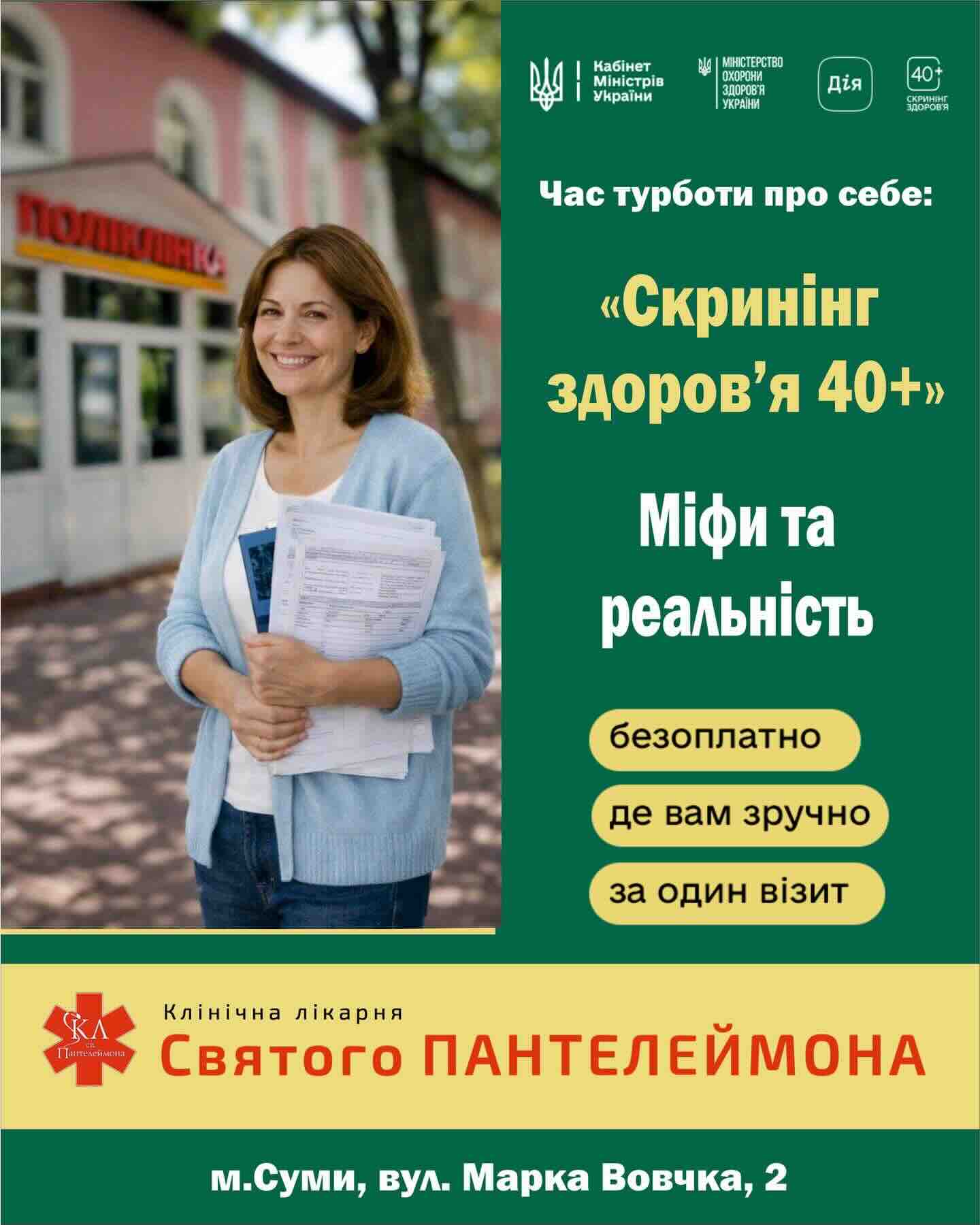 Сумська клінічна лікарня Святого Пантелеймона приєдналася до національної програми «Скринінг здоров’я 40+». Про це повідомив директор медзакладу Володимир Поцелуєв, наголосивши, що новий формат обстежень дозволяє виявляти небезпечні захворювання ще до появи симптомів.