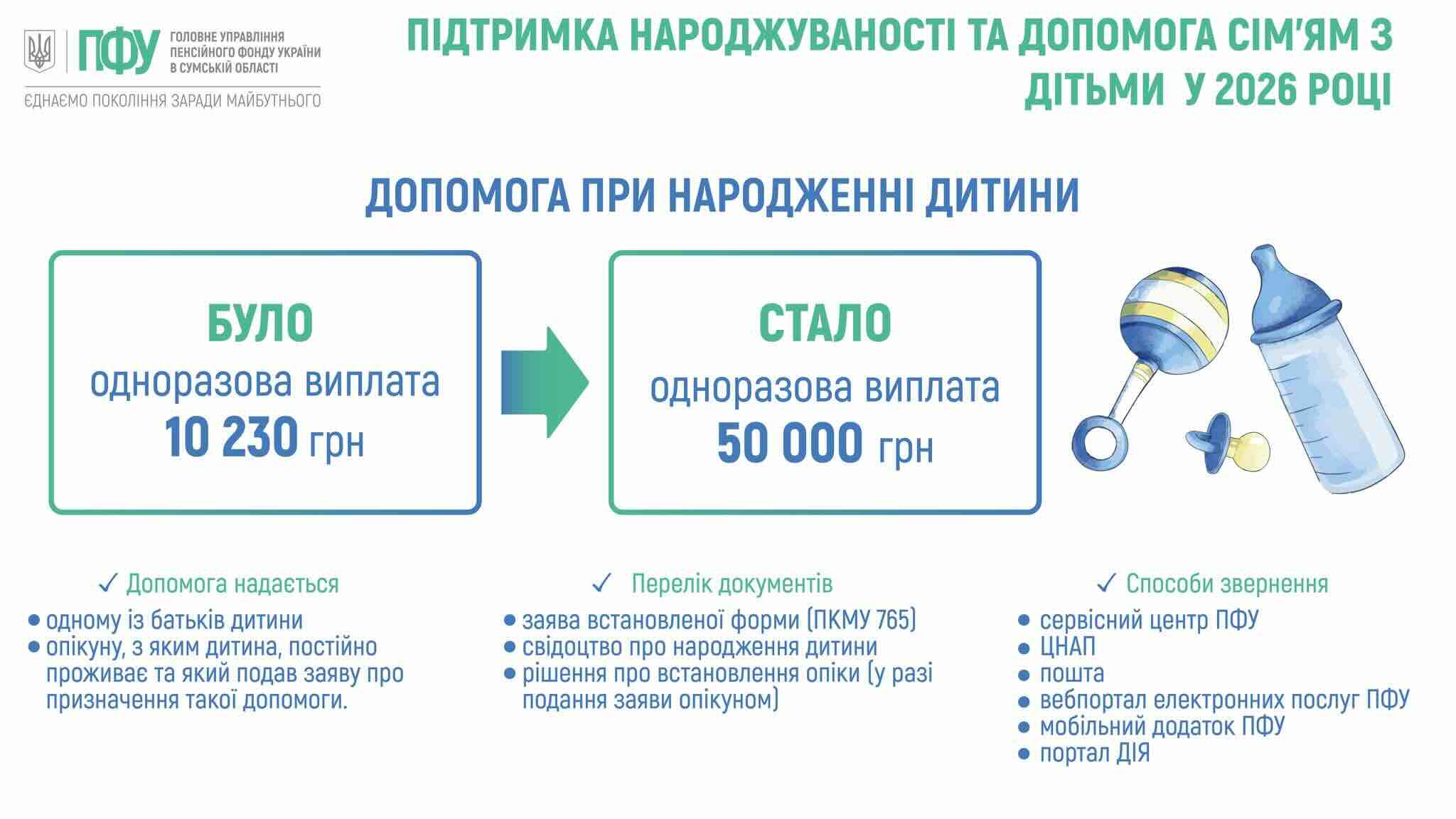 Пенсійний фонд Сумщини інформує: Як зросли виплати при народженні дитини у 2026 році