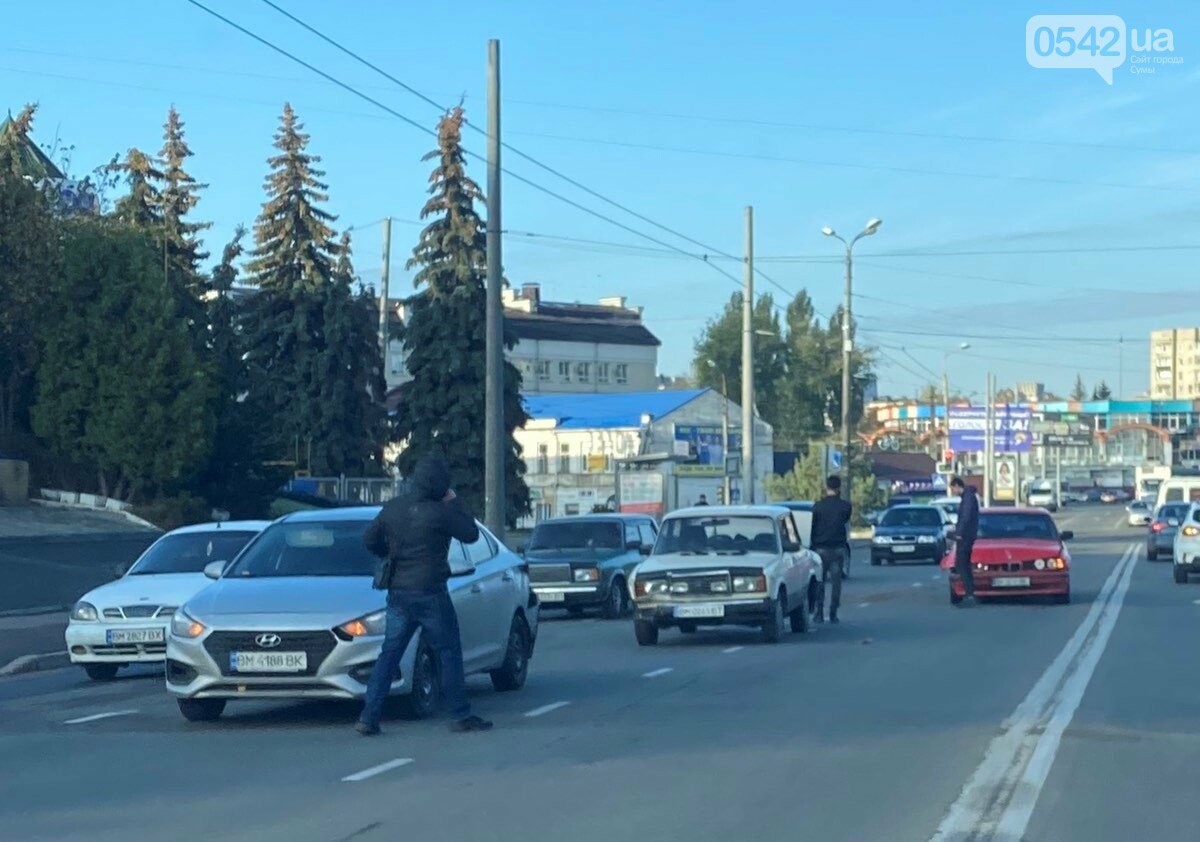 Як повідомив нам речник УПП в Сумській області Олег Сологуб, повідомлення про пригоду надійшло о 9:00. Зіткнулися автівки: BMW, ВАЗ та Hyundai. Водій автівки BMW не дотримався безпечної дистанції і допустив зіткнення з автомобілем ВАЗ, після чого останній за інерцією в’їхав у Hyundai, який був попереду. Внаслідок ДТП ніхто не постраждав. Автівки зазнали механічних пошкоджень.