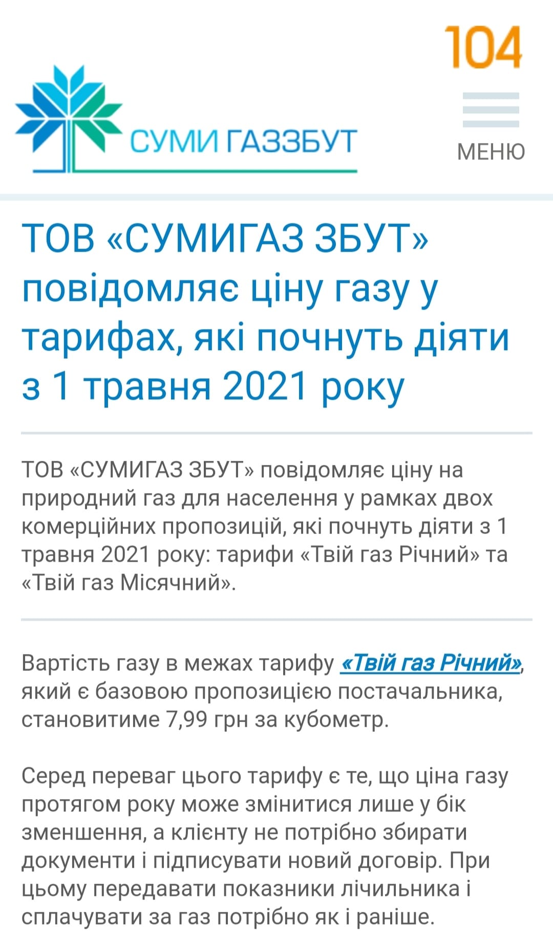 Тепер на вибір газопостачальники пропонують два тарифи: річний – базовий, на який з початку травня перевели вже всіх споживачів, та місячний – він буде встановлюватися щомісячно, “в затежності від ринкової вартості”. Річний тариф становить 7,99 грн за кубометр і буде змінюватися нібито лише в бік зменшення. Зважаючи на попередній досвід, ТАМ☝завжди знайдуться аргументи за підвищення вартості газу», – висловився Вадим Лисий на своїй сторінці у Фейсбуці.