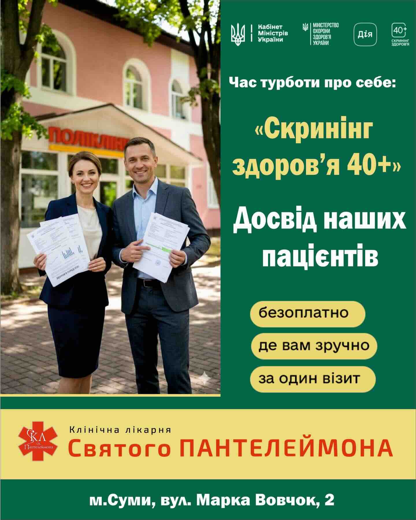 «Ми запрошуємо всіх приєднатися до тих містян, які вже подбали про своє майбутнє. Алгоритм дуже простий: через 30 днів після вашого дня народження вам потрібно лише оформити Дія.картку та записатися на безоплатний скринінг 40+ у стінах лікарні Святого Пантелеймона», — резюмує Володимир Поцелуєв.