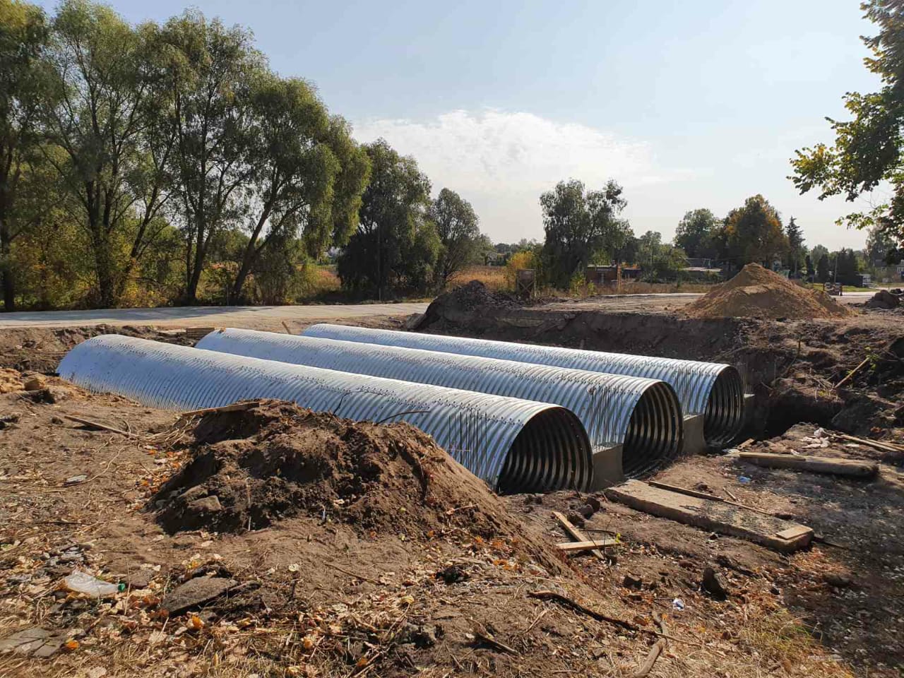 – улаштування металевих водопропускних труб під тимчасову об’їзну дорогу;