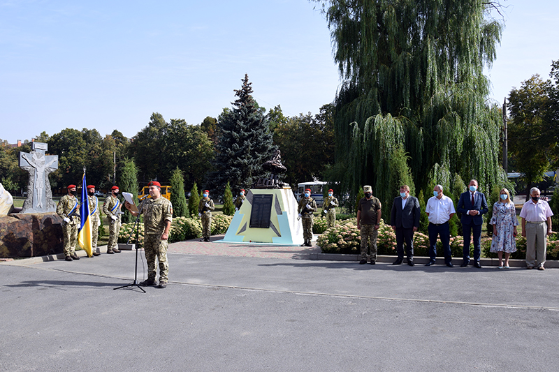 Хвилиною мовчання присутні вшанували пам’ять про тих, хто самовіддано захищав цілісність і недоторканість України, та поклали квіти до пам’ятного знаку 17 загиблим воїнам-артилеристам.