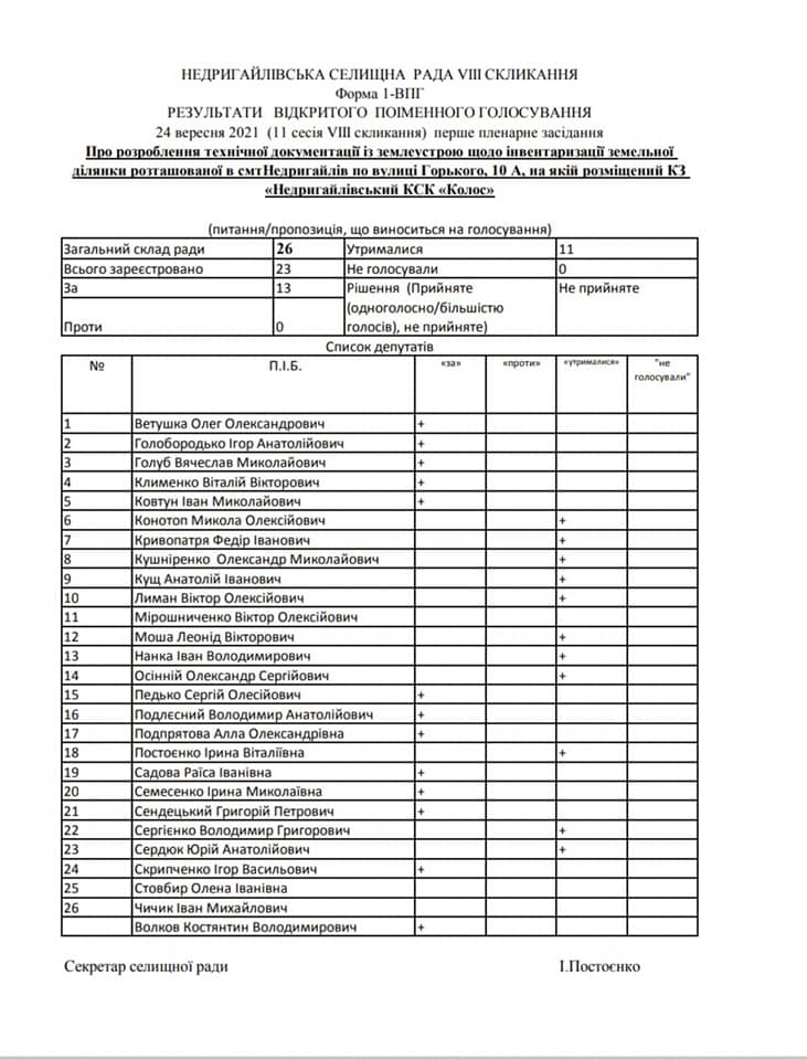 Відтак, аби громада знала своїх «героїв» наведемо імена тих, хто не проголосував за це рішення та свідомо поставив під загрозу розвиток місцевого стадіону «Колос».