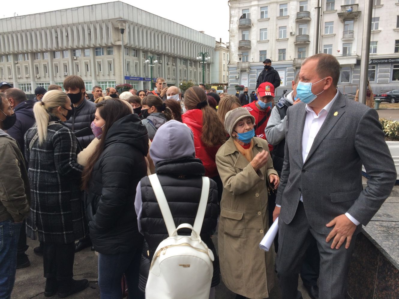 Нагадаємо: підприємці вже двічі виходили на мітинги в суботу та неділю. Вчора виконком прийняв рішення поки не забороняти їм працювати, але закрив навчальні заклади.