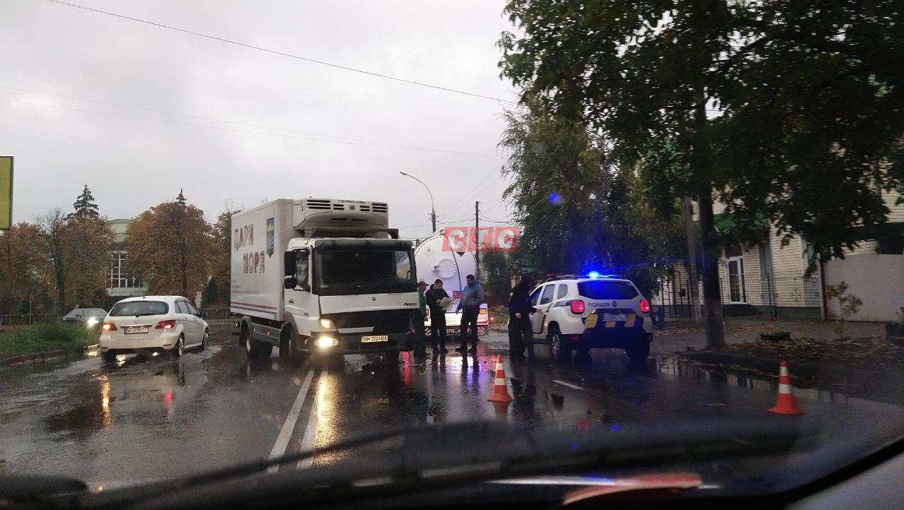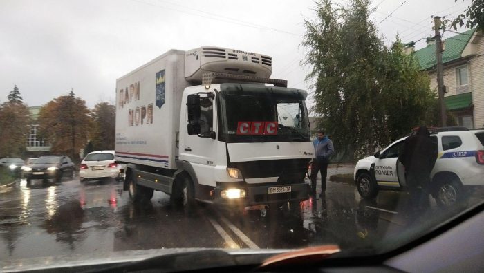 Водій МАН не впорався з керуванням та в’їхав у Mercedes-Benz. Внаслідок аварії ніхто не постраждав, передає sts.sumy.ua.
