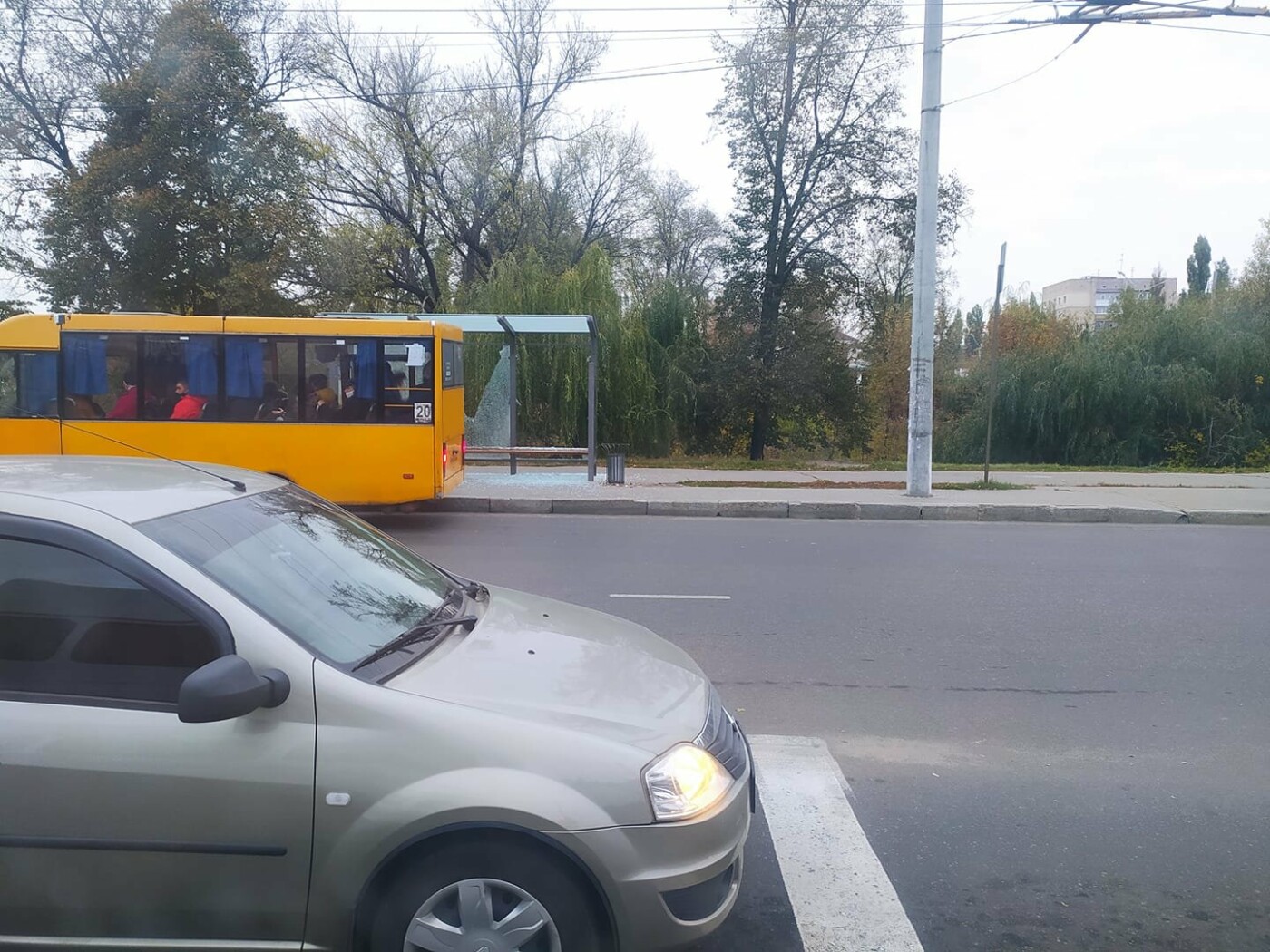 Зупинка «Центральний ринок» на вул. Набережна р. Сумки піддалася набігу вандалів. Одне зі стекол на ній повністю розбите, друге — наполовину. Відповідним фото поділився у Фейсбуці сумчанин Самір Маммадлі.