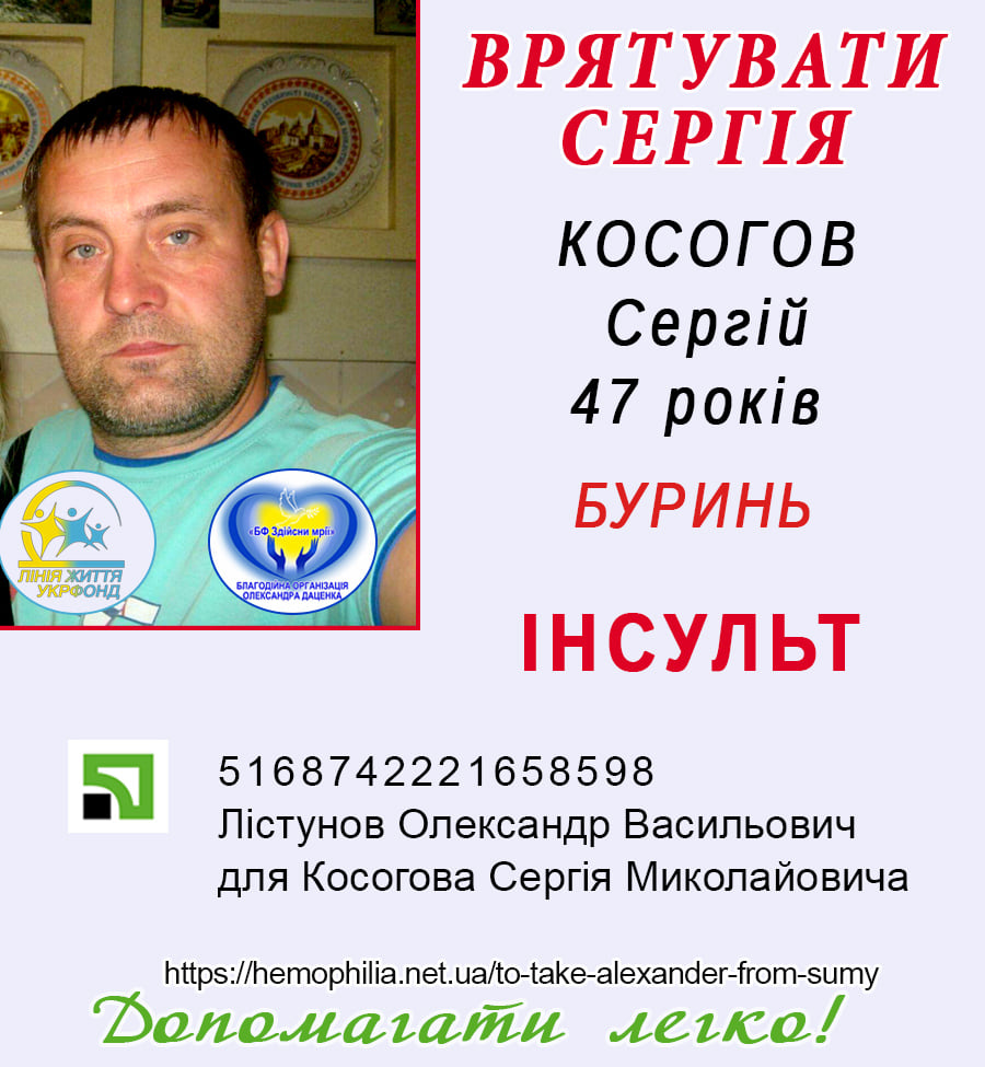 І ось раптом у Сергія вчора 18.10. 2020 р. стався інсульт.