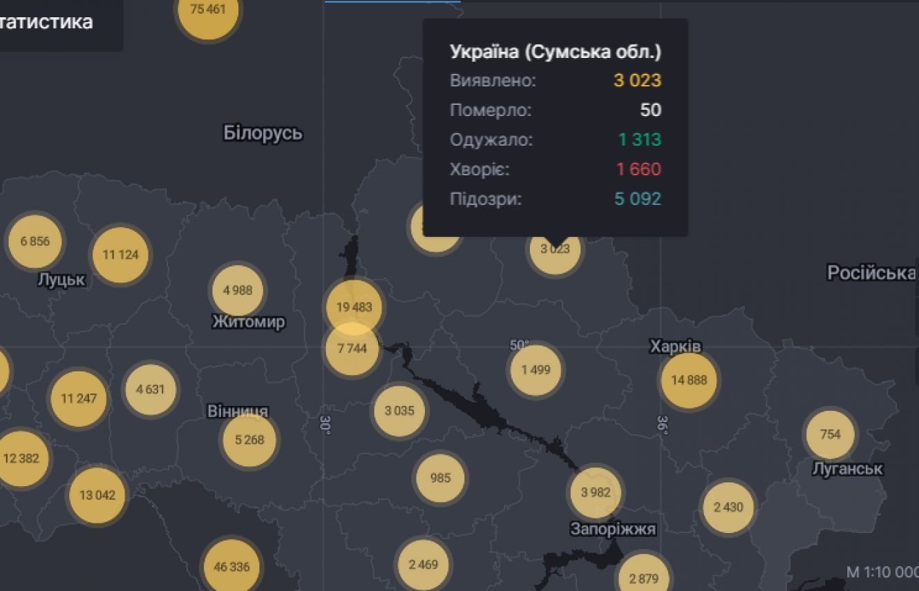 На Сумщині 107 нових випадків COVID-19