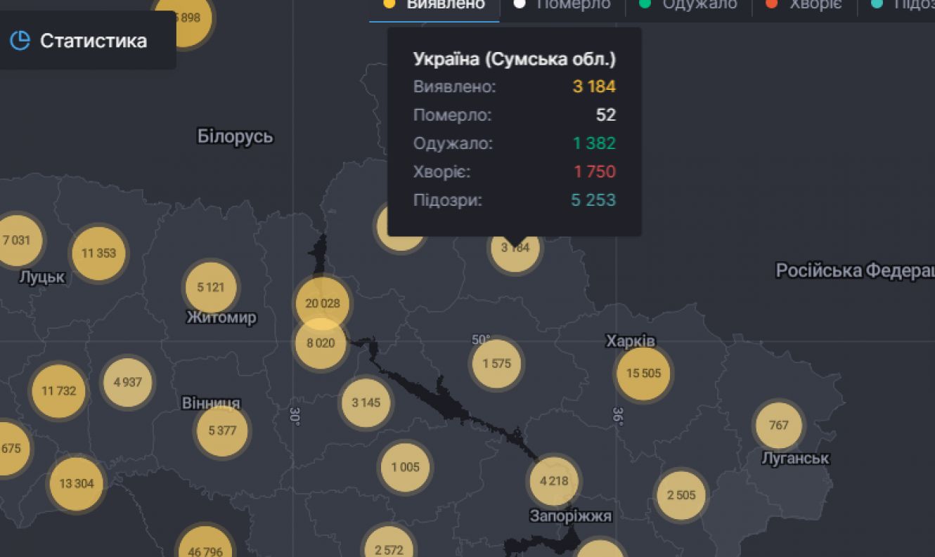 В Сумській області 67 нових випадків COVID-19