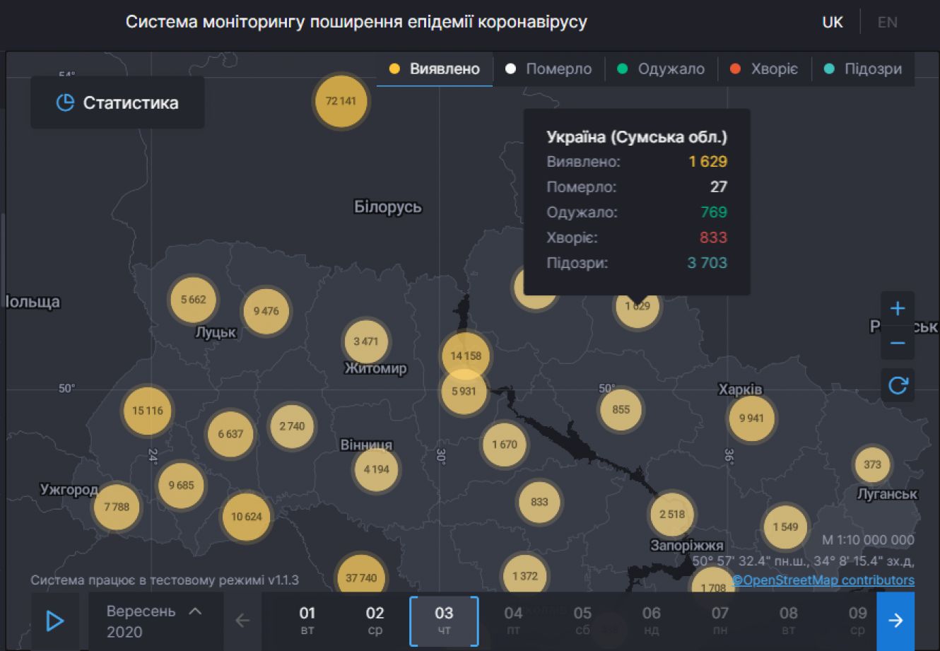 Станом на ранок 3 вересня в області виявлено 1629 випадків COVID-19 (+58 за добу).