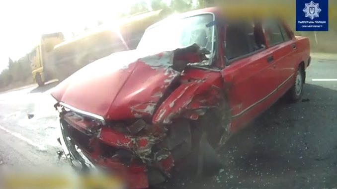 Автопригода сталася вихідними на автодорозі Н 12 “Суми — Полтава”. Прибувши на місце автопригоди, патрульні попередньо встановили, що 55-річна жінка, керуючи автомобілем ВАЗ-2107, виїхавши на смугу зустрічного руху, допустила зіткнення з вантажним автомобілем DAF з напівпричепом, 37-річний водій якого рухався в зустрічному напрямку.