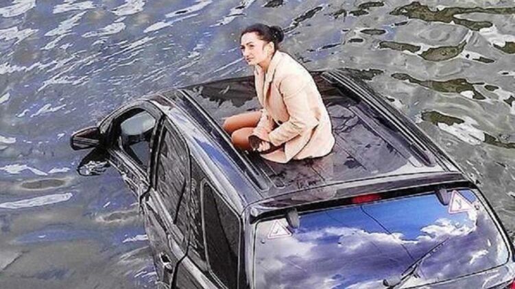 Фотография девушки, сидящей на крыше автомобиля в реке, вызвала бурную реакцию соцсетей. Наблюдательные жители города не смогли обойти этот инцидент стороной и сделали девушку героем соцсетей.