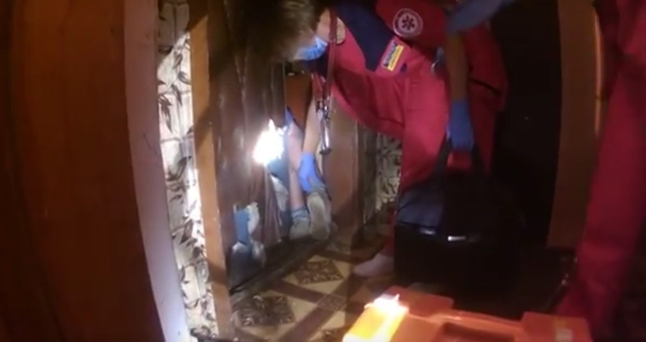 Пленницей собственного дома стала пенсионерка в многоквартирном доме города Хмельницкого. Помощь вызвали соседи, которые видели только ноги застрявшей женщины, которая, впрочем, не звала на помощь. Попытка вытащить соседку успехом не увенчалась и соседи решили прибегнуть к помощи профессионалов.