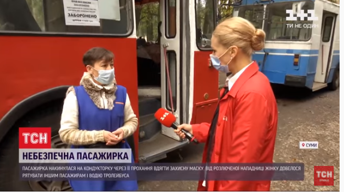 Ми вже розповідали про те, як у Сумах на робочому місці побили кондукторку тролейбуса. Пасажирка накинулася на неї, щойно та попросила її вдягти захисну маску. Била пляшкою, телефоном та гаманцем. Від розлюченої нападниці кондукторку рятували інші пасажири та водій тролейбуса.