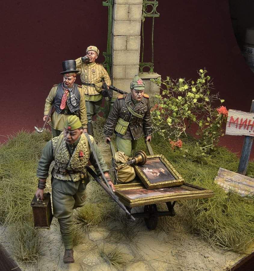 Справка. Компания «D-Day Miniature Studio» имеет своих представителей в 15 странах мира, в том числе в Украине и в России. Полный набор советских солдат-мародеров стоит 75 евро, но производитель заявляет, что фигурки можно приобрести по отдельности.