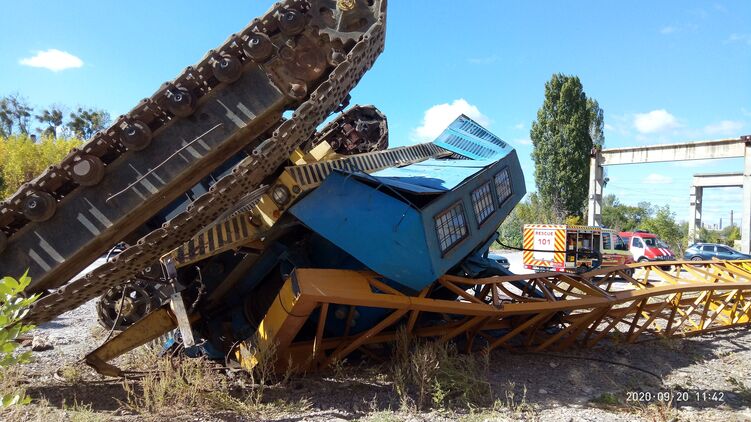 В Харькове на улице Велико-Бурлуцкой утром перевернулся кран. В этот момент в кабине находился мужчина, его зажало между конструкциями.