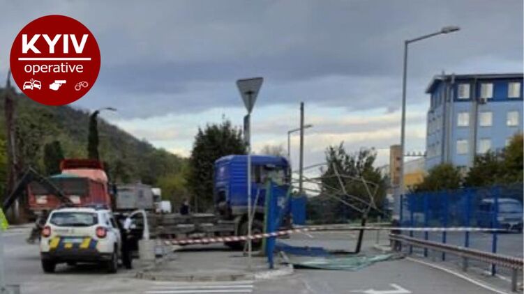 На улице Пироговский Путь в Киеве у грузовика отказали тормоза и она снесла остановку общественного транспорта.