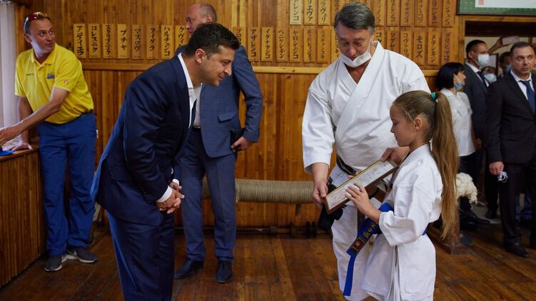 Так, во время поездки Зеленский посетил занятие юных каратистов в Кропивницком. Его там встретила Арианна Мурженко, которая попала в Книгу рекордов Украины как самая молодая украинка, ставшая чемпионкой мира по традиционному карате в программе ката. В прошлом году, когда она завоевала эту награду, ей было всего 9 лет и 3 месяца.